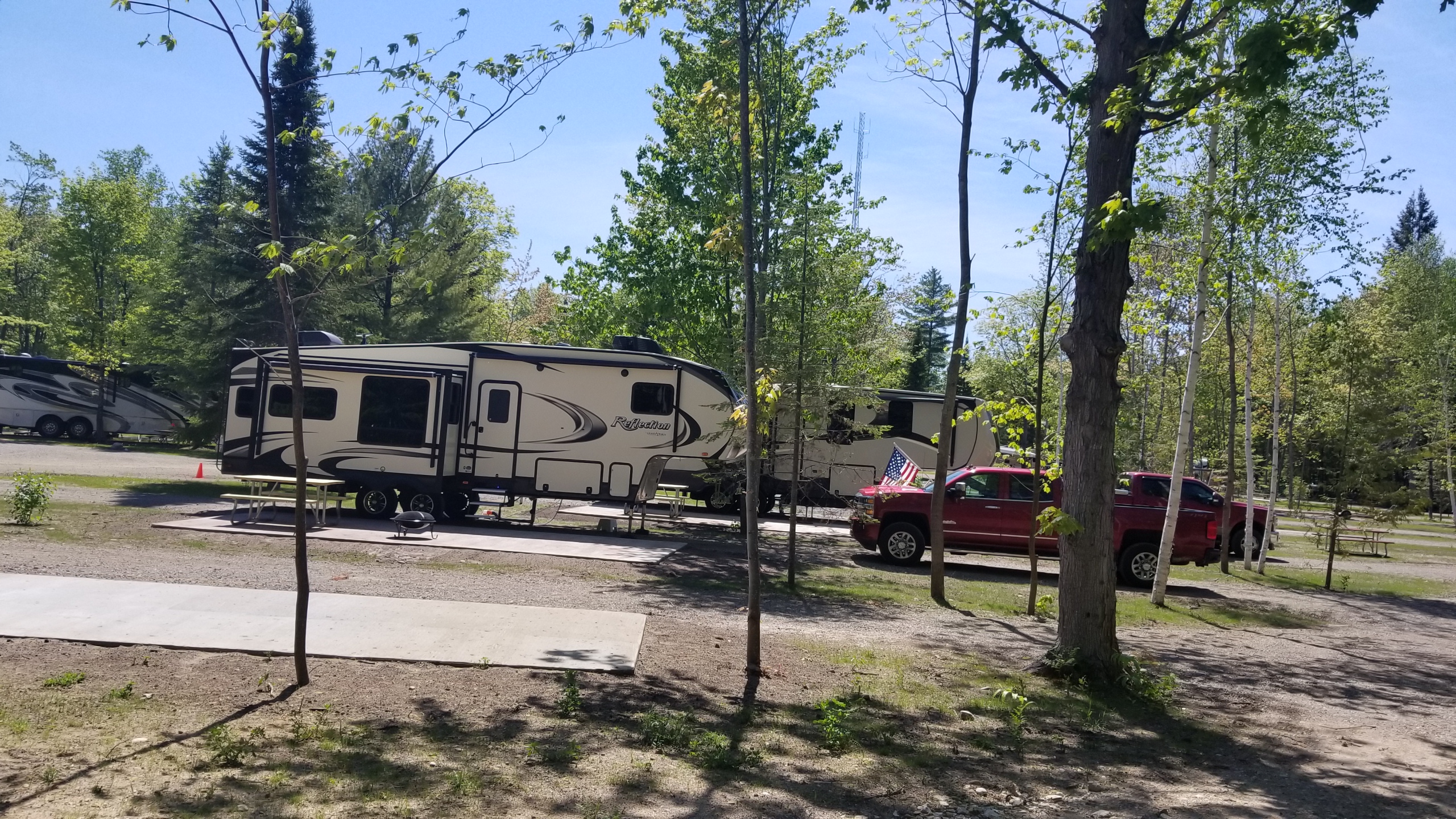 A good sam park on the straits of mackinac, with outstanding views of mackinac bridge, mackinac island, freighter and ferry traffic.